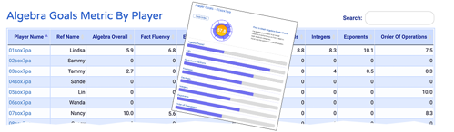 The Algebra Goals Metric offers easy-to-use assessment and intentional goal setting. The AGM shows school, classroom, or individual student overall measure of performance in First In Math for EIGHT important algebraic categories: